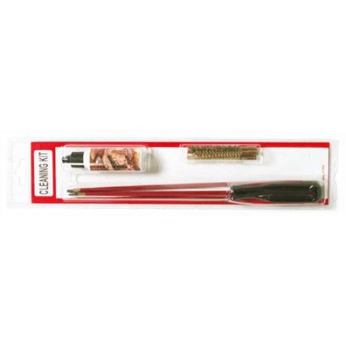 В набор входят: трехсекционный разборный шомпол (стальной в пластиковой оболочке), вишер-пуховка, щетинный вишер и щетинный металлический вишер, оружейное масло (25мл.).