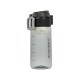 Изготовлена из прочного прозрачного поликарбоната. Продуманная конструкция крышки позволяет открывать её лёгким нажатием на кнопку и закрывать одной рукой. В открытом состоянии верхняя часть крышки автоматически фиксируется и не опрокидывается при питье. Удобный поильник позволяет пить непосредственно из бутылки, без использования чашек и выкручивания крышки. Узкое отверстие поильника предотвращает расплескивание жидкости при использовании на ходу.