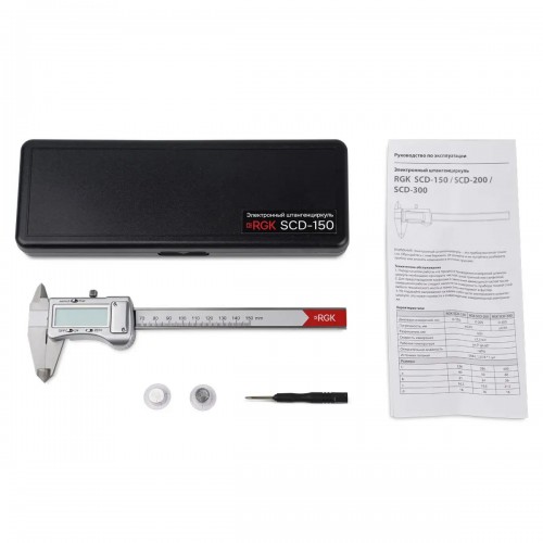 Электронный штангенциркуль RGK SCD-150 представляет собой измерительный инструмент с рабочим диапазоном от 0 до 150 мм, оборудованный цифровым отсчетным устройством с ЖК-индикатором. Основными сферами применения устройства является производство и ремонт механизмов, в которых используются метрические и дюймовые винтовые соединения.