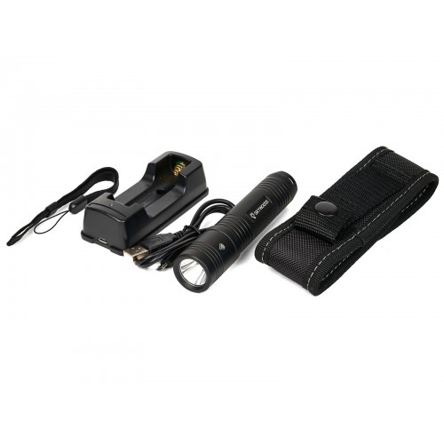 Комплектация: Фонарь HUNTER HAWK, аккумулятор 18650, USB-кабель, темляк, зарядное устройство для аккумулятора, запасное О-Ринг кольцо, удобный чехол из кордуры для крепления на ремень.