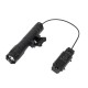 - Выносная кнопка, которая идет в комплекте также оснащена креплениями на обвес M-LOCK и на планку Picatinni. Оба этих крепления являются взаимоисключающими, то есть снимаем одно, чтобы установить другое, держатся крепления на двух болтах, которые можно открутить шестигранником, идущим в комплекте с фонарем. Также можно снять оба крепления, чтобы приклеить выносную кнопку на двусторонний скотч или на изоленту, но эстетику такой вариант крепления, конечно подпортит.