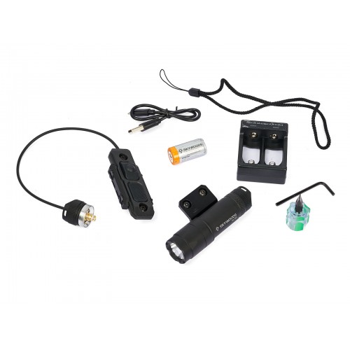Комплектация: Фонарь SKYWOODS HUNTER MINI M-LOCK, Аккумулятор 16340, крепление на Picatinni (Пикатини), выносная кнопка, темляк, ключ шестигранник, отвертка плоская, кабель USB, зарядная станция для двух аккумуляторов, инструкция.