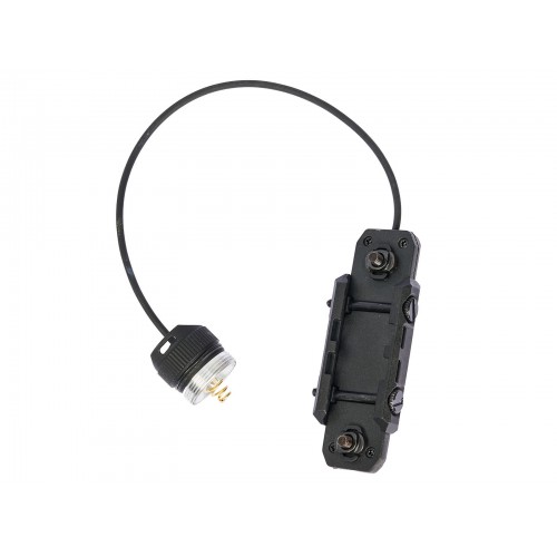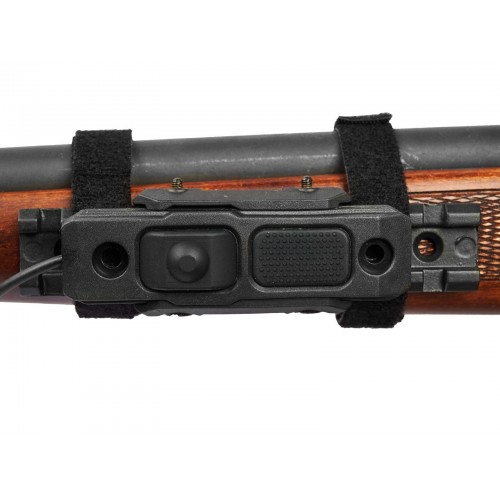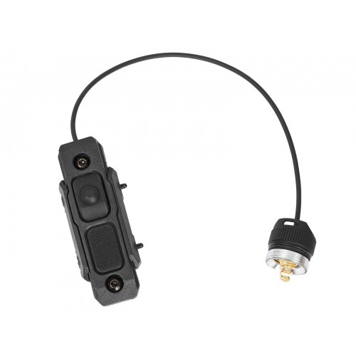 - Выносная кнопка, которая идет в комплекте также оснащена креплениями на планку Picatinni, и на M-LOCK. Оба этих крепления являются взаимоисключающими, то есть снимаем одно, чтобы установить другое, держатся крепления на двух болтах, которые можно открутить шестигранником, идущим в комплекте с фонарем. Также можно снять оба крепления, чтобы приклеить выносную кнопку на двусторонний скотч или на изоленту, но эстетику такой вариант крепления, конечно подпортит.