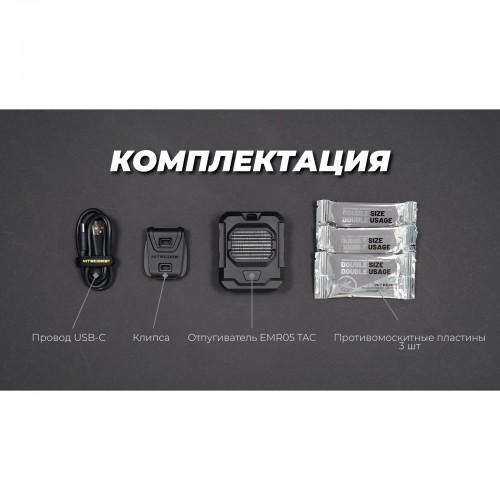 Примечание. Размер противомоскитной пластины NITECORE: 34 x 48 мм / 1,34 x 1,89 дюйма (каждая обеспечивает защиту до 6 часов).
