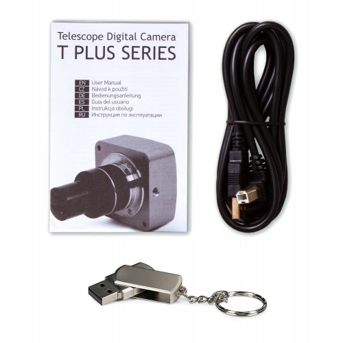 Камера устанавливается на телескоп вместо штатного окуляра и подключается к компьютеру через USB-кабель. Поддерживаемый интерфейс подключения – USB 2.0. Программное обеспечение для работы с камерой уже включено в комплект и поставляется на удобном флеш-носителе. Вывод изображения на экран, съемка фото и видео ведутся в разрешении Full HD (1920x1080 пикс).