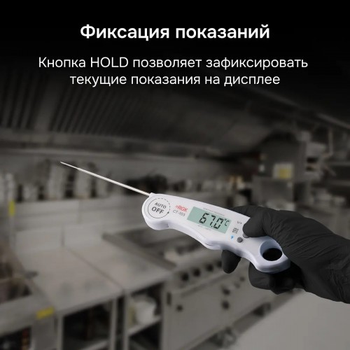 По классу пыле- и влаго-защиты термометр соответствует категории IP66, благодаря чему при загрязнении прибор можно мыть под струей воды. Измерительный зонд изделия диаметром 3,5 мм и длиной 113,4 мм заужен в передней части до 1,7 мм. За счет этого при проверке внутренней температуры кулинарной продукции не портится ее внешний вид.