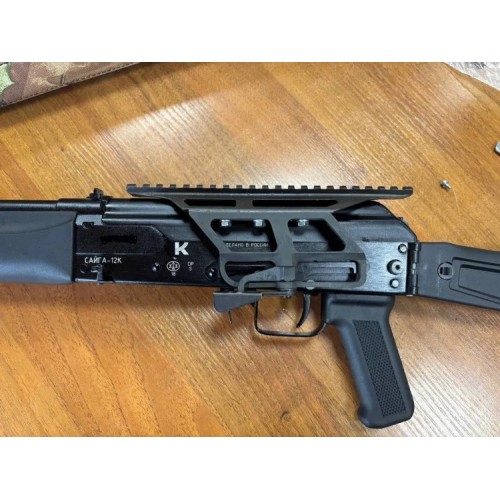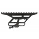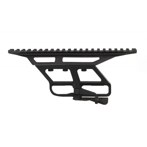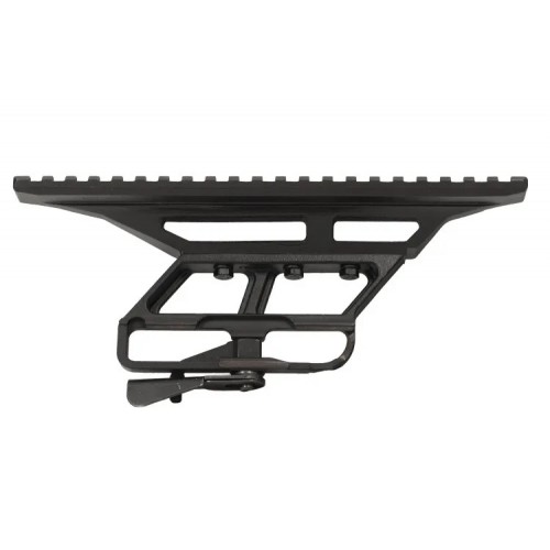 Кронштейн предназначен для установки на боковую планку АК, карабинов Сайга, Вепрь. Фиксируется на планке быстросъемным флажковым зажимом с эксцентриком. Выполнен из стали. Планка Picatinny/Weaver цельнофрезерованная с частью корпуса кронштейна. Длина планки 220мм, 21 слот, ширина пазов 5мм.