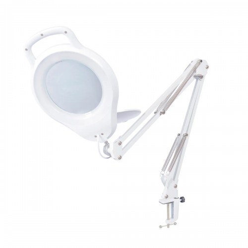 Лупа-лампа закреплена на металлическом штативе, состоящем из двух секций – это позволяет располагать лупу на высоте от 0 до 65 см над поверхностью стола. Штатив с помощью металлической струбцины закрепляется на плоских поверхностях толщиной до 5,5 см – столах, полках, верстаках и т.д. Струбцина имеет винтовой зажим и мягкие накладки, защищающие поверхность стола от царапин.