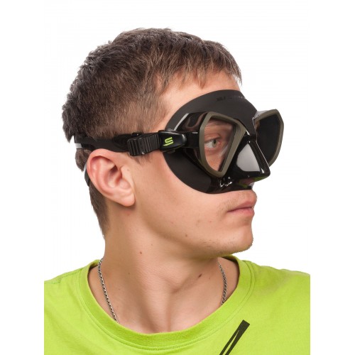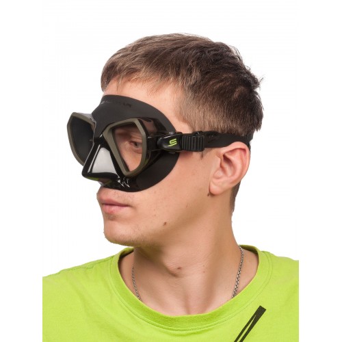 Маска для фридайвинга и подводной охоты Salvimar NOAH имеет чрезвычайно маленький объем подмасочного пространства.