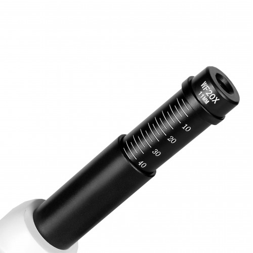 Комплектные окуляры широкого поля WF10х/15 и WF20/11 обеспечивают общее увеличение микроскопа от 40х до 2000х. При использовании входящей в комплект линзы Барлоу максимальное увеличение может быть поднято до 4000х, окуляры в этом случае устанавливаются в оправу линзы. Линзу можно сдвигать вдоль оптической оси окулярного тубуса, плавно изменяя тем самым увеличение. Максимальное увеличение достигается с объективом 100х с иммерсией при полностью выдвинутой линзе.