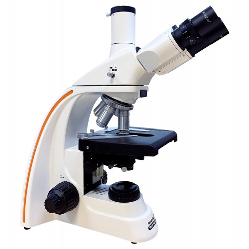 За формирование картинки отвечают два 10-кратных окуляра и четыре планахроматических объектива, скорректированных на бесконечность. Благодаря удаленному зрачку в окуляры можно смотреть, не снимая очков, – поле зрения не будет обрезаться. Также есть корректировка диоптрий на левом тубусе. Увеличение микроскопа составляет от 40 до 1000 крат. Бинокулярный визуальный узел имеет 30-градусный наклон, который делает длительные наблюдения менее утомительными. Наличие отдельной вертикальной трубки позволяет использовать во время работы цифровую камеру – для съемки фото и видео (в комплект не включена).