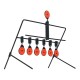 Мишень можно легко и быстро установить на любую гладкую поверхность или воткнуть в землю. Верхняя мишень с опорной планкой должна находиться перед нижними.