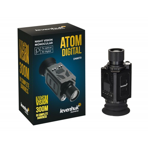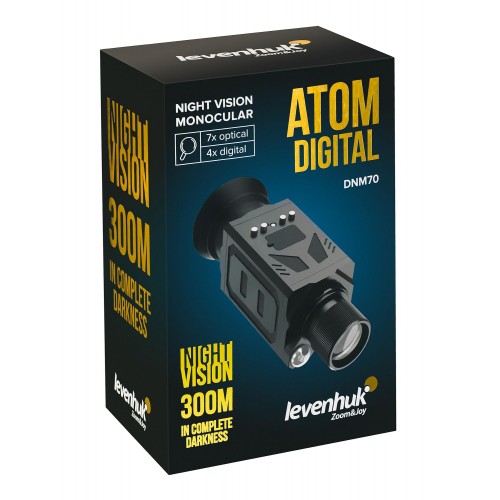 Levenhuk Atom Digital DNM70 – это надежный монокуляр ночного видения, который подходит для наблюдения при любых условиях освещенности. В его основе – качественная стеклянная оптика и цветной CMOS-сенсор, который обеспечивает четкую и детализированную картинку как днем, так и ночью. В темное время суток изображение формируется в оттенках серого, днем – цветное. Оптическое увеличение 7x в сочетании с цифровым зумом 1/2/3/4x позволяет обнаруживать и внимательно изучать цели даже на значительном удалении. Корпус выполнен из алюминиевого сплава с резиновым покрытием, поэтому устойчив к ударам, вибрациям и перепадам температуры.
