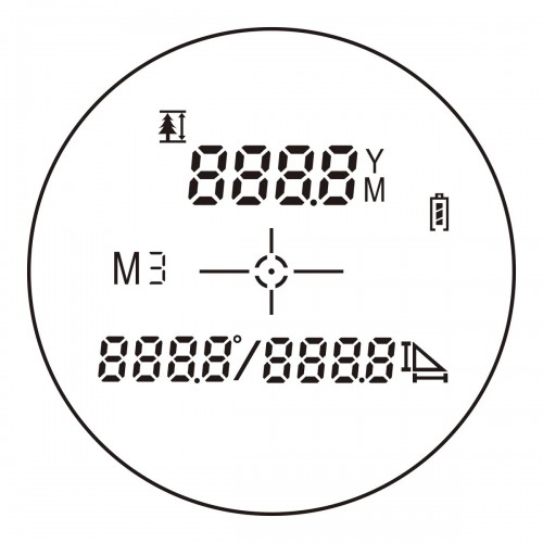 Данные измерений выводятся автоматически на ЖК-дисплей. При включении устройства всегда отображается прицельная марка. Информация о расстоянии, угле и высоте объекта выводится в зависимости от выбранного режима. Данные выводятся в метрах или ярдах, в зависимости от настроек.