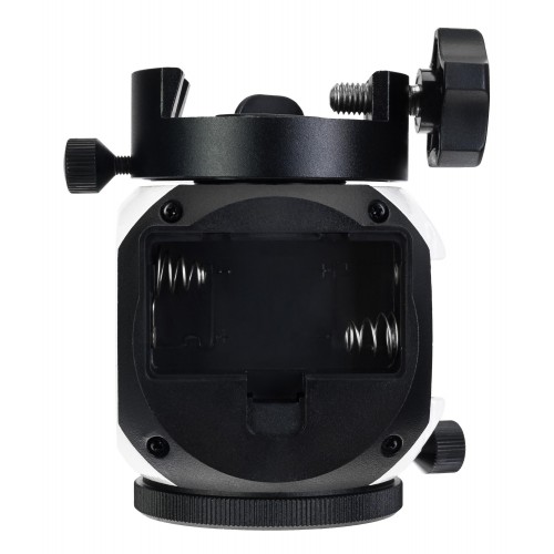 Высокая точность работы устройства обеспечивается продуманной конструкцией привода. В его основе находятся алюминиевая шестерня на 144 зубца, латунная втулка с червячным механизмом, зубчатый ремень и шкив, гарантирующие плавное ведение объектов без люфтов. Для питания монтировки можно использовать 2 батарейки типа АА, которых хватит на 24 часа непрерывной работы, либо внешний источник, подключенный через порт microUSB.