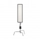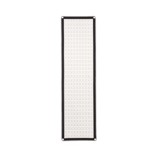 Тонкая складная панель размером 34,5х122 см может устанавливаться на металлический Х-кронштейн или натягиваться с помощью люверсов в углах полотна. Для крепления на неровных поверхностях, в углах и на выступах предусмотрены липучки («велкро») по периметру панели.
