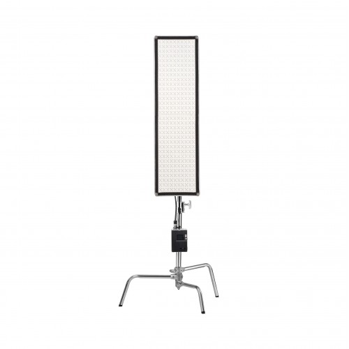 Осветитель питается от сети или от аккумулятора V-mount, позволяющего прибору работать автономно и сохранять непрерывность рабочего процесса. Площадка для установки аккумулятора, как и разъем для подключения кабеля, распложена на блоке управления панелью.