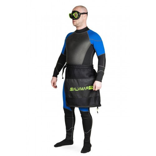 Крепится с помощью ремня с застежками «Фастекс» на поясе ныряльщика. Как фартук.