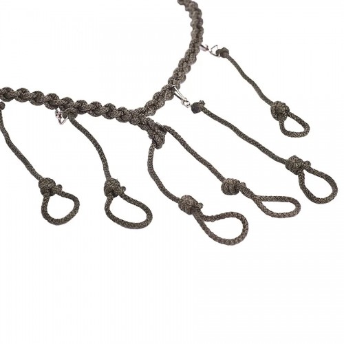 Подвесы изготавливают из прочных мягких материалов, а широкое плетение не создает нагрузку на шею. При необходимости для удобства использования хвосты подвеса можно отрегулировать по длине.