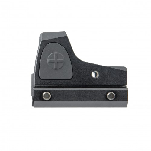 Элементы управления расположены по бокам от объектива. Кнопа «+» включает прибор и увеличивает яркость, кнопка «–» снижает яркость и отключает прицельную марку.
