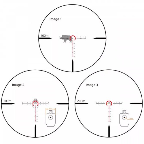 Кратность 1–6×. При 1× обеспечивается реальное изображение цели и широкий угол обзора 38 м/100 м — на 10% шире, чем у LPVO (low-power variable optic) моделей Tauron первого поколения. Это позволяет наблюдать двумя глазами и стрелять на скорость по движущимся целям. На 6× прицел даёт детализированное изображение и уверенную стрельбу на средних дистанциях.