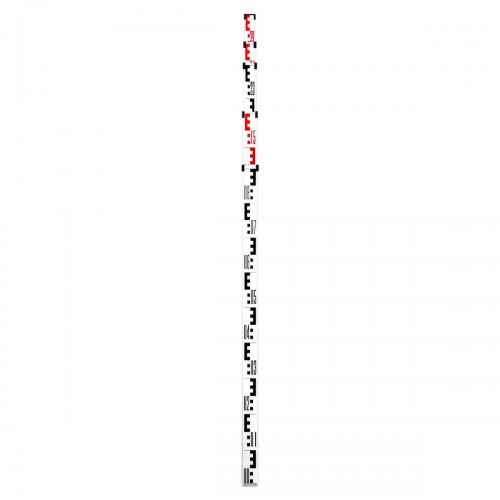 - Две шкалы с разных сторон рейки, миллиметровая и шашечная, с дециметровыми интервалами, начало отсчета которых совпадает с опорной кромкой стальной пятки в нижней части, дают возможность использовать нивелирную рейку как с оптическими, так и с лазерными нивелирами.