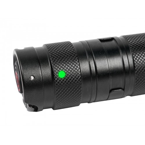 - Индикатор заряда. Фонарь оснащен индикатором заряда аккумулятора, чтобы вы всегда могли понять сколько времени работы примерно у Вас, осталось: