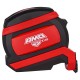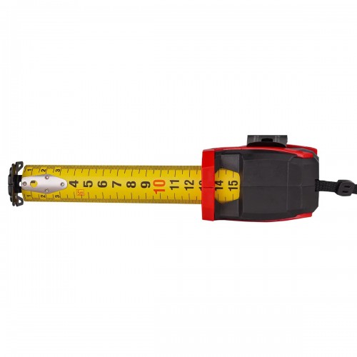 Лента шириной 32 мм удерживает прямолинейную желобчатую форму, позволяя выдвигать рабочую часть более чем на 3 м без заломов под собственным весом. Двусторонняя миллиметровая разметка мерного полотна обеспечивает комфортное считывание результатов изменений с измерительной рулетки в любом положении, в том числе при выполнении замеров в труднодоступных местах. Нейлоновое покрытие, защищающее рабочую часть инструмента от воздействия влаги и абразивных частиц, обладает в 4 раза большей стойкостью к истиранию, по сравнению с лакированным. На торце измерительной ленты установлен усиленный двойной зацеп с перпендикулярной частью с обеих сторон и неодимовыми магнитами, позволяющий фиксировать начало отсчета, не привлекая помощника.