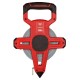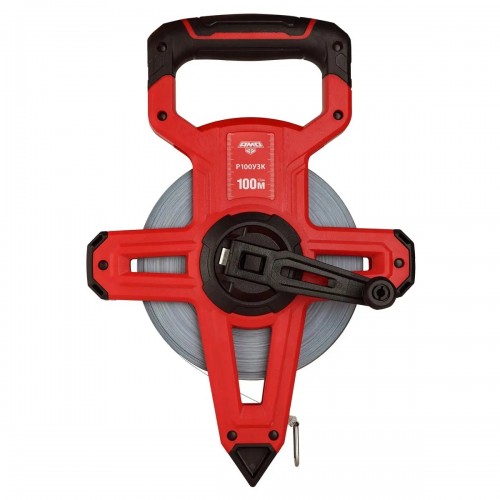 Полотно измерительной рулетки с закрепленным на конце кольцом изготовлено из углеродистой стали, за счет чего мало подвержено растяжению и деформациям, обладая более продолжительным эксплуатационным ресурсом, по сравнению с фиберглассовой лентой. Метод прямых измерений, с непосредственным считыванием показаний с миллиметровой шкалы, позволяет точно фиксировать начальную и конечную точку при выполнении замеров, не допуская ошибки наведения на предельных дистанциях, как у лазерных дальномеров. Открытый пластиковый корпус снабжен верхней ручкой и заостренным концом в нижней части для установки инструмента в выбранной точке. Механизм сматывания ленты редукционного типа позволяет путем вращения ручки быстро приводить рулетку в исходное состояние после замера.