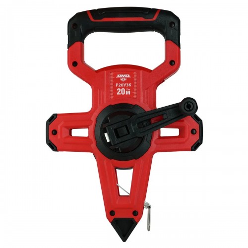- За счет открытой конструкции корпуса, выполненного из пластика с упрочняющими накладками, измерительная рулетка характеризуется сравнительно небольшим весом; заостренная нижняя часть дает возможность фиксировать точку замера в плане на грунте или на горизонтальной поверхности.