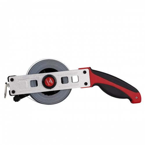 - Закрепленное на вытяжном конце кольцо служит для натяжения полотна с целью достижения номинальной точности измерений; для нормирования натягивающего усилия можно задействовать динамометр или же груз калиброванного веса – при измерениях в вертикальной плоскости.