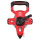 Измерения производятся с использованием ленты из углеродистой стали, изготовленной методом холодного волочения с термообработкой, которая снабжена разметкой с миллиметровыми делениями и защитным покрытием. Вытяжной конец измерительной рулетки, оснащенный кольцом, закрепленным на торцевой части, позволяет крепить динамометр или калиброванный груз, обеспечивая натяжение полотна при выполнении измерений с повышенной точностью в горизонтальной либо вертикальной плоскости соответственно.