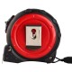 В качестве материала мерной ленты в измерительной рулетке применена углеродистая сталь, которая характеризуется высокой прочностью и стабильностью геометрических параметров. Для удобства считывания показаний миллиметровая шкала нанесена с обоих краев на лицевой части выдвижного полотна. Используемый в качестве начала отсчета перемещающийся Г-образный зацеп прямоугольной формы на конце ленты позволяет удобно выполнять измерения от внешних и из внутренних углов. Вытяжной конец рулетки возвращается в корпус автоматически под действием пружинного механизма при разблокировке полозкового фиксатора, обеспечивая быстрое приведение инструмента в исходное положение для выполнения последующих замеров.
