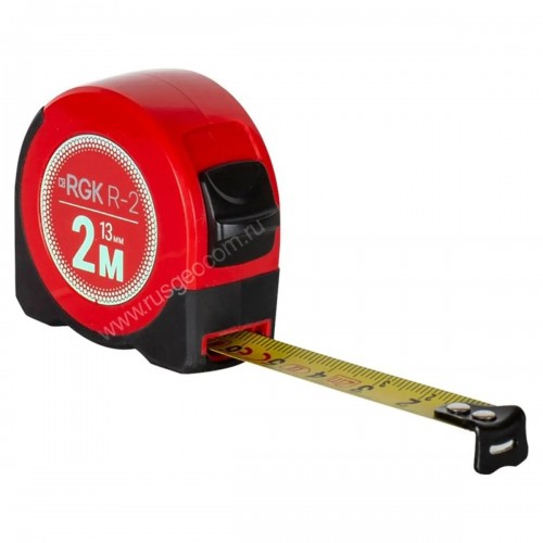 Измерительная рулетка RGK R-2 длиной 2 метра выполнена в ударопрочном корпусе и имеет кольцо для ключей. Компактные размеры позволяют хранить рулетку в ящике с инструментами, а небольшой вес обеспечит удобство ношения на поясе.