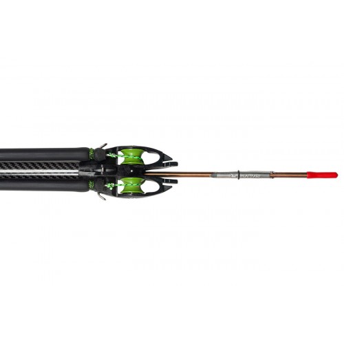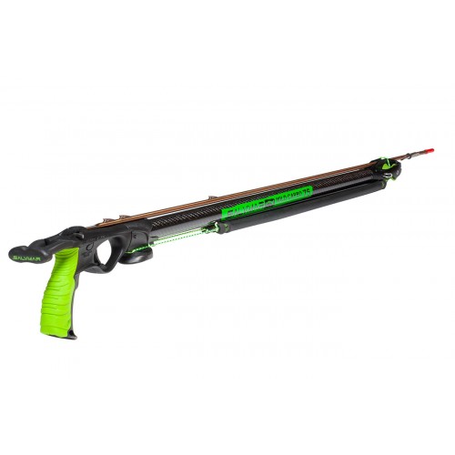 - Ружье оснащено высококачественным эластичным тяжом S400 со специальным зацепом из дайнемы без вставных сфер. Ружье арбалет роллер Salvimar WILD CARBO ROLLER применяется исключительно с тяжами с зацепом из дайнемы без вставных сфер, так как вставные сферы разобьют роллерное оголовье.