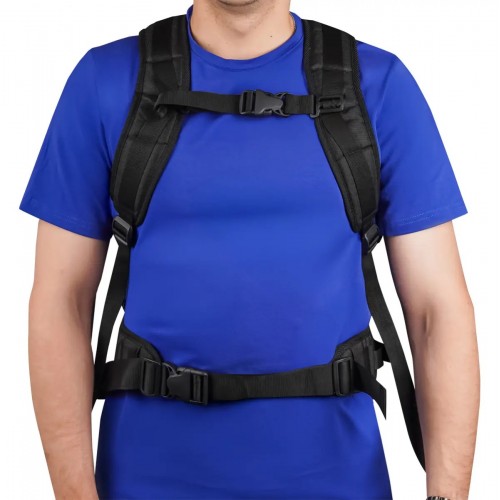 Рюкзак изготовлен из прочной и износостойкой ткани, обеспечивающей долговечность и устойчивость к неблагоприятным условиям эксплуатации. Комфорт при длительном ношении достигается благодаря прочным регулируемым лямкам, надежному поясному ремню и светоотражающим элементам, повышающим безопасность пользователя.