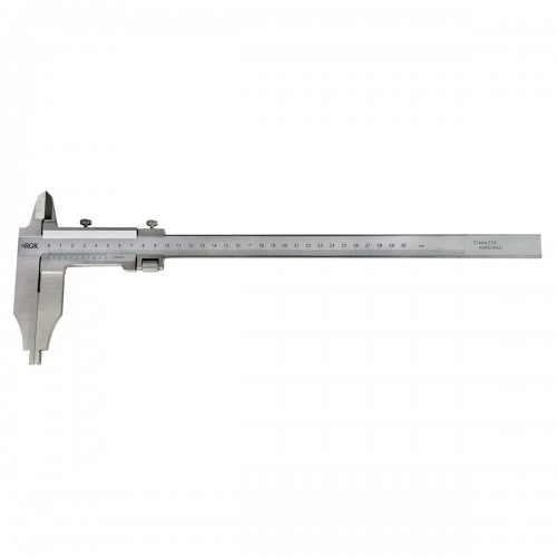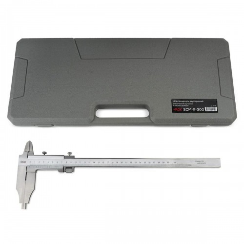 Штангенциркуль RGK SCM-II-300 представляет собой надежный и точный измерительный инструмент механического типа, с рабочим диапазоном 0 - 300 мм, снабженный нониусом, позволяющим снимать отсчеты с разрешением 0,02 мм. Главным его преимуществом является возможность не только выполнения измерений, но и реализации разметочных функций, для чего изделие снабжено механизмом точной регулировки положения рамки с микрометрическим ходом и может оснащаться стандартным приспособлением для разметки.