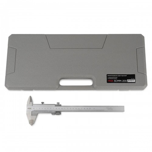 Штангенциркуль называется SCMM-200, где SC означает - штангенциркуль, M - c микрометрической установкой нониуса, M - механический, а 200 - это максимальное значение измерений в мм.