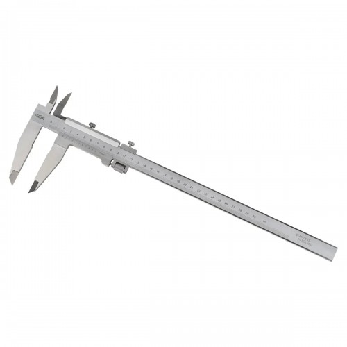 Оснащенный нониусом на 50 делений, штангенциркуль способен выполнять измерения с разрешением в 0,02 мм. Миллиметровая шкала отличается улучшенной контрастностью, по сравнению с обычными аналогам с гравировкой на матовой хромированной поверхности. Ее деления защищены от истирания продольными выступами по краям штанги, которые непосредственно контактируют с внутренней частью рамки. Для наглядности, длинные штрихи нониусной шкалы отмечены целыми числами, что ускоряет считывание показаний.