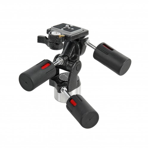 Наклонно-поворотная 3D-головка с винтом 1/4'' и переходной гайкой на 3/8'', входящая в комплект штатива-колонны, подходит для большинства камер, таких как Canon, Nikon, Sony, Leica, Sinar, Linhof и т. д. с весом не более 20 кг. Штативная головка оснащена быстросъемной площадкой для простой, удобной и надежной установки фотокамеры – фиксатор-блокиратор предотвратит ее случайное падение. Три регулировочные рукоятки позволяют вращать установленную камеру по трем осям.