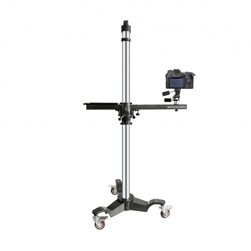 Движение камеры по горизонтали обеспечивает стальная балка длиной 103 см, плавное перемещение по которой может осуществляться на длину 56 см. С противоположной от камеры стороны балки монтируется лоток для ноутбука размером 27x37 см. Он подходит для 13-дюймовых и 14-дюймовых ноутбуков и имеет предохраняющие от падения бортики.