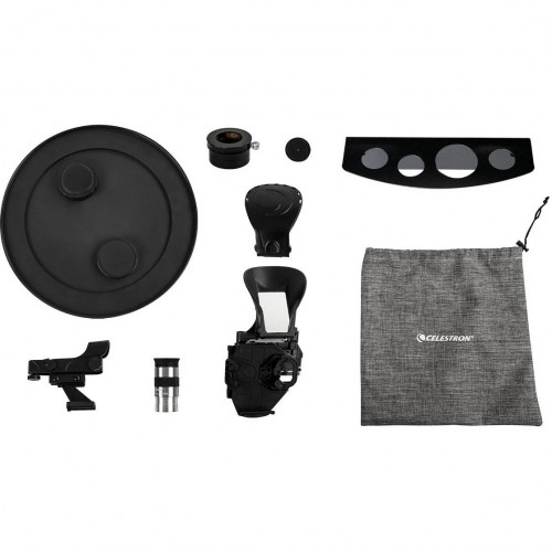 - В комплект входят окуляр Plössl 25 мм, 2-дюймовый фокусировщик Crayford, док-станция для смартфона StarSense, дальномер с красной точкой StarPointer, крепление для окуляра и инструмент для коллимации.