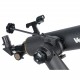 Высота металлического штатива-треноги регулируется от 72 см до 124 см за счет телескопической конструкции с винтовыми фиксаторами. Пластиковые опоры на ножках не позволяют штативу царапать поверхность пола. При использовании телескопа в «полевых» условиях пластиковые опоры выкручиваются вверх и штатив устанавливается на неровную поверхность на «шипах». Для точного выравнивания штатива сверху на корпусе размещен крупный пузырьковый уровень диаметром 25 мм, а для придания устойчивости крепится растяжка с лотком, служащая одновременно полочкой для окуляров.