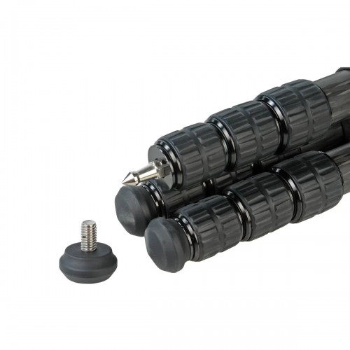 Трипод выполнен из карбона – прочного и легкого материала, металлические элементы изготовлены из авиационного алюминия. Благодаря этому тренога весит всего 1,9 кг и при этом выдерживает оборудование весом до 30 кг, что значительно превышает выносливость алюминиевых штативов.