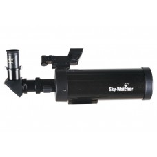 Труба сконструирована по оптической схеме Максутова-Кассегрена – благодаря этому аберрации сведены к минимуму. В комплект входят два окуляра. Начинать наблюдения лучше с окуляра 25 мм – он имеет более широкое поле зрения, так что вы сможете охватить взглядом большее пространство. Второй окуляр – 10 мм – лучше использовать для детального изучения объектов. Труба комплектуется диагональным зеркалом, поэтому вы сможете вести наблюдения из наиболее удобного положения. Для поиска объектов используется искатель с красной точкой.