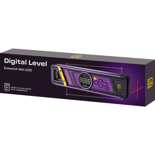 Ermenrich Verk LD25 объединяет высокую точность измерений и компактный ударопрочный корпус, который легко помещается в карман куртки или ящик с инструментами. Встроенный лазер формирует идеально ровные горизонтальную и вертикальную линии, поэтому прибор становится незаменимым при монтаже и отделке, где требуется строгая геометрия.