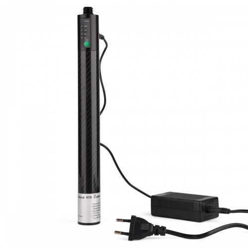 Внешнее питание для ГНСС приемника RGK BL5000 снабжено внутренним Li-ion аккумулятором емкостью 5 000 мА ч и совместимо со всеми геодезическими устройствами с рабочим напряжением 12 В. Изделие выполнено в виде мини-вешки – в тонком корпусе цилиндрической формы, и оптимизировано для установки GPS антенны в верхней части, для чего оборудуется винтовым 5/8-дюймовым креплением. Для размещения на штативе с переходником либо вехе предусмотрено отверстие снизу, с такой же резьбой.