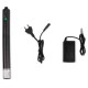 Изделие оснащено коннектором под штекер Lemo 5, который задействуется для подключения к запитываемому устройству, а также для подзарядки от комплектного сетевого адаптера. Четырехэлементный светодиодный индикатор, который активируется нажатием зеленой кнопки TEST, позволяет контролировать уровень заряда.